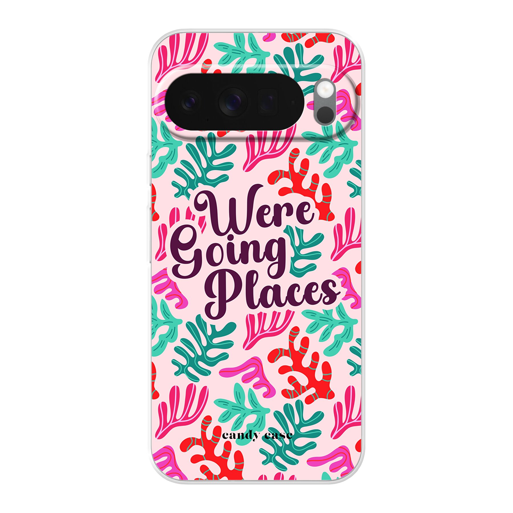 Laat je Google telefoon je gids zijn naar nieuwe avonturen met de “We’re Going Places” Roze Soft Case! Dit betoverende telefoonhoesje, met zijn levendige print van bladeren in groen, fuchsia en rood, is perfect voor de ontdekkingsreiziger in jou. Net als zijn blauwe tegenhanger, maakt dit hoesje van je telefoon een symbool van avontuur en ontdekking.