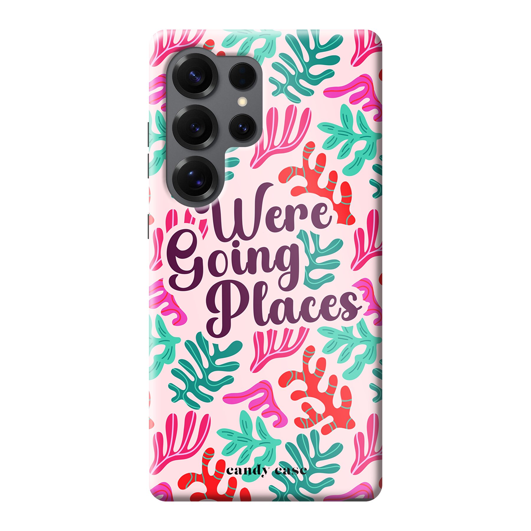 Ontdek de wereld met stijl met de We’re Going Places Roze Tough Case voor je Samsung! Dit levendige hoesje, met zijn vrolijke print in roze, rood en beige, geïnspireerd op bladeren, en de inspirerende tekst “We’re Going Places”, is de ideale metgezel voor de avonturier in jou.